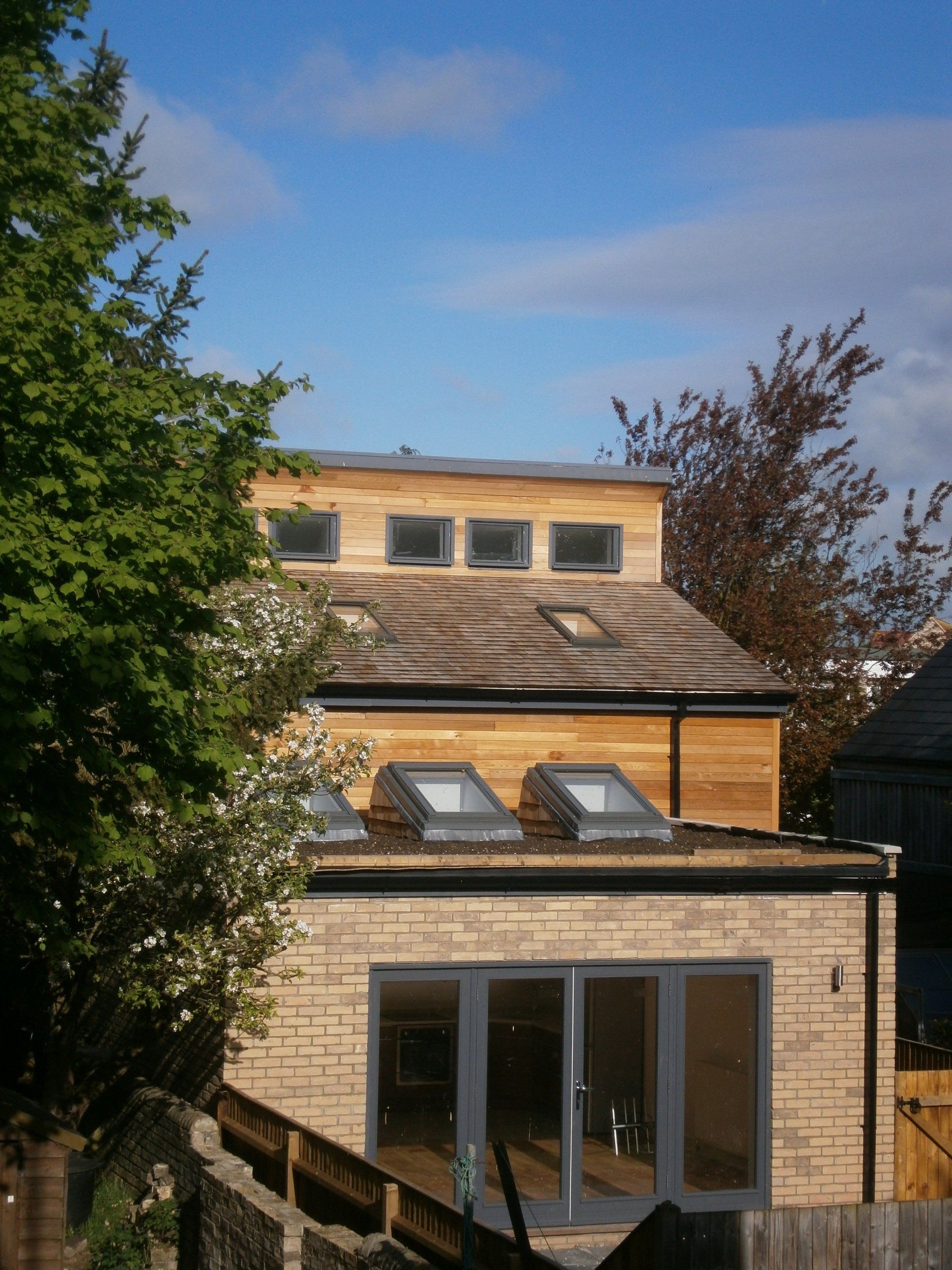 This new 2-bedroom dwelling has been carefully and sensitively designed to respond to the back lane character of this city centre location. Traditional materials have been selected but have been used in a contemporary way lending a modern look to the dwelling. A cedar shingle roof provides a rich, warm colour and texture which blends the house into the surroundings. The natural effects of aging and weathering will give an attractive silvery grey colour in time and will lend a distinctive look to the property. The single storey flat roof is covered in sedum grass providing a softer and more attractive appearance.